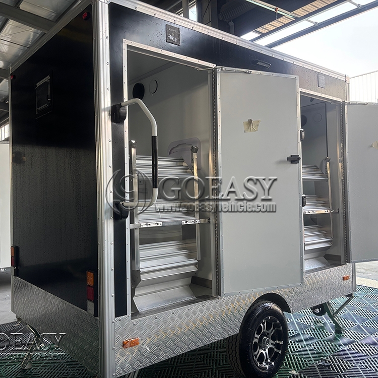The 2 station block toilet trailer is a versatile, self-contained mobile restroom unit designed to deliver premium sanitation facilities in any environment. Featuring two independent, fully equipped toilet compartments, this trailer combines durability, hygiene, and user comfort in a compact, easy-to-tow design. Its rugged metal exterior and weather-resistant construction make it ideal for both temporary and long-term deployments, while the modern interior amenities ensure a positive experience for users. Whether for high-traffic events, remote work sites, or emergency response, this trailer provides a reliable and professional restroom solution.